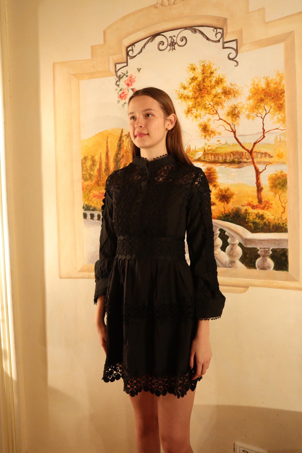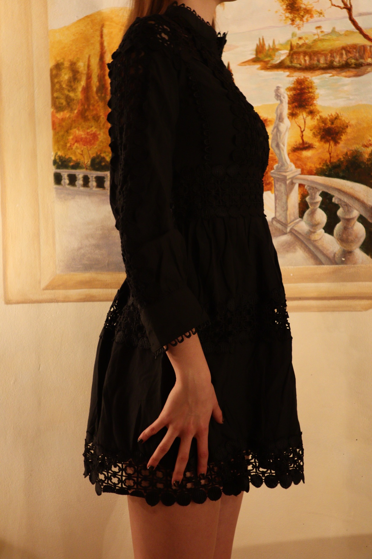 Rochie neagră cu model elegantă.